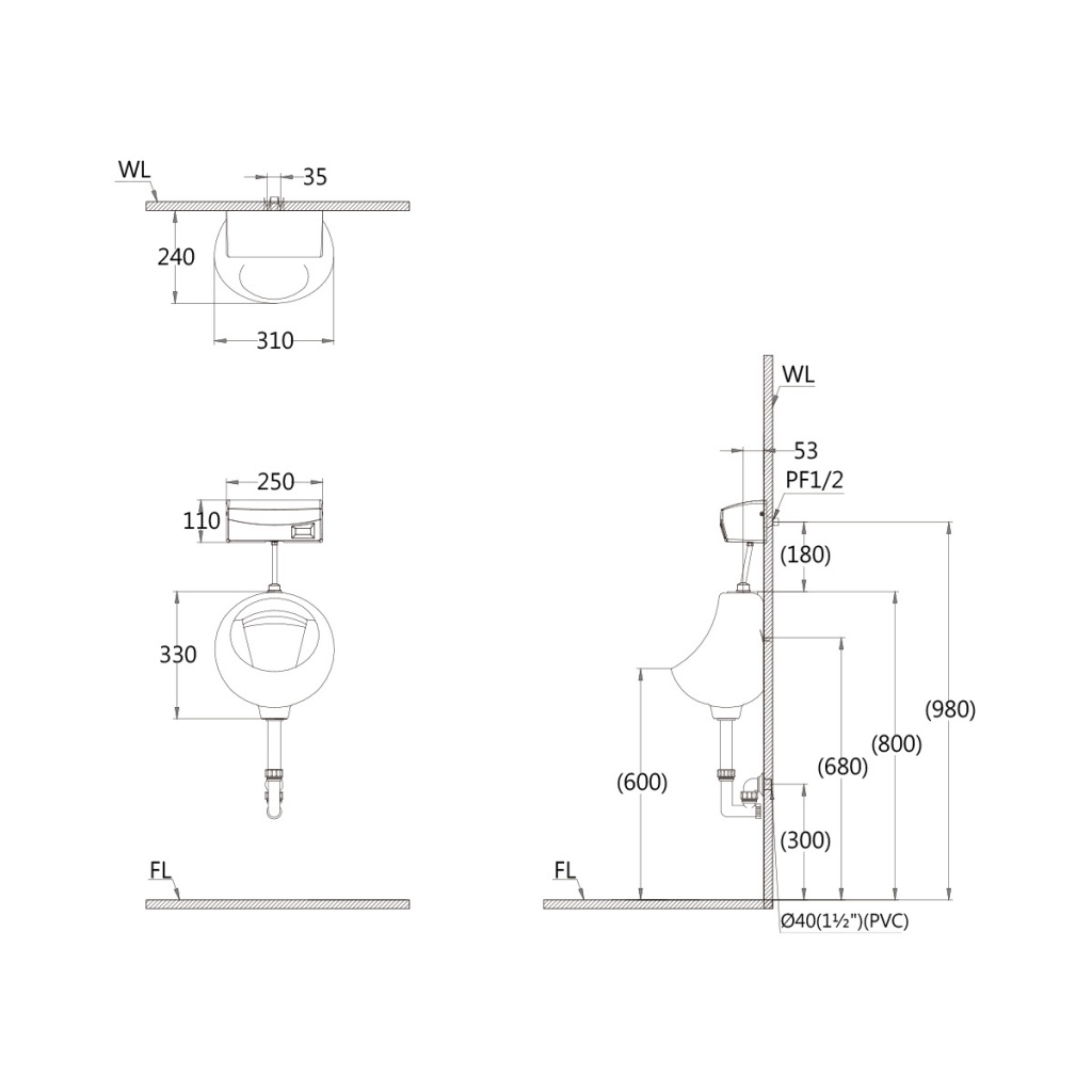 球型壁掛式便斗U0210-A644-BF405P
