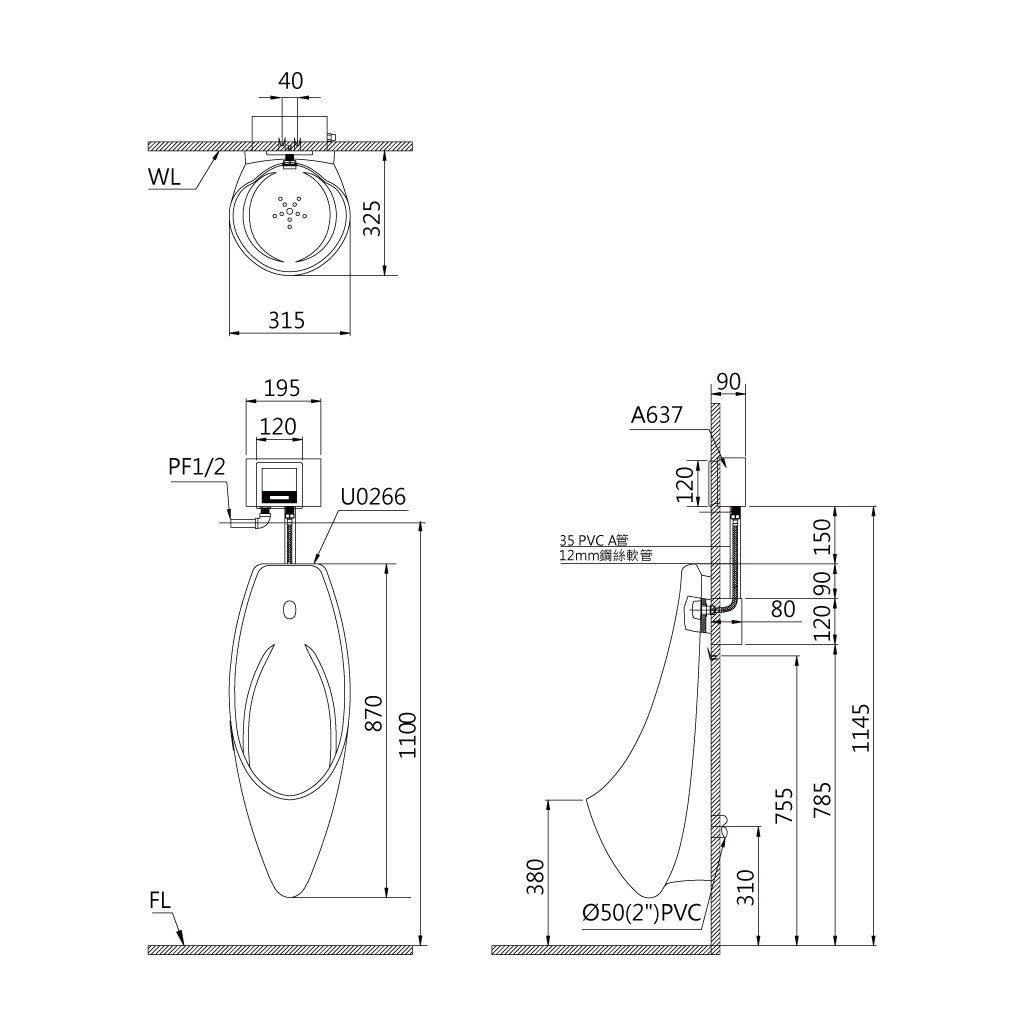 埋壁感應壁掛便斗U0266-A637